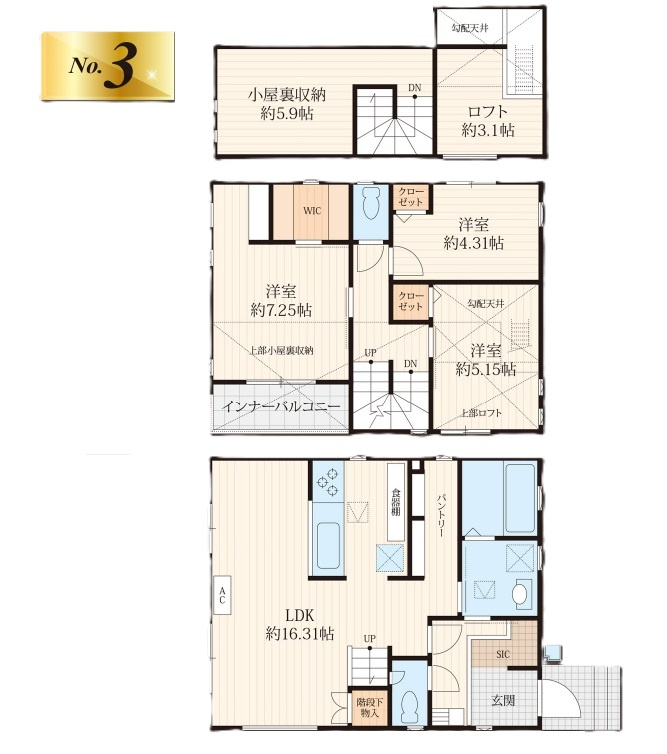 東久留米市滝山4丁目・全3棟 新築未入居一戸建 3号棟