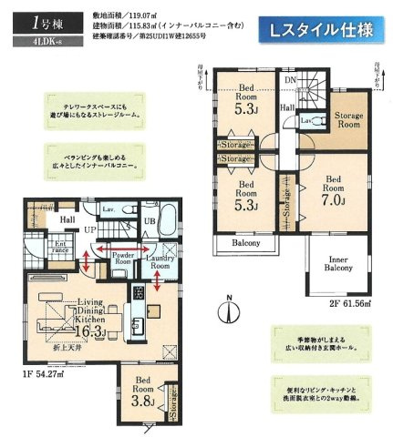 - 所沢市北秋津・全2棟 新築一戸建 1号棟