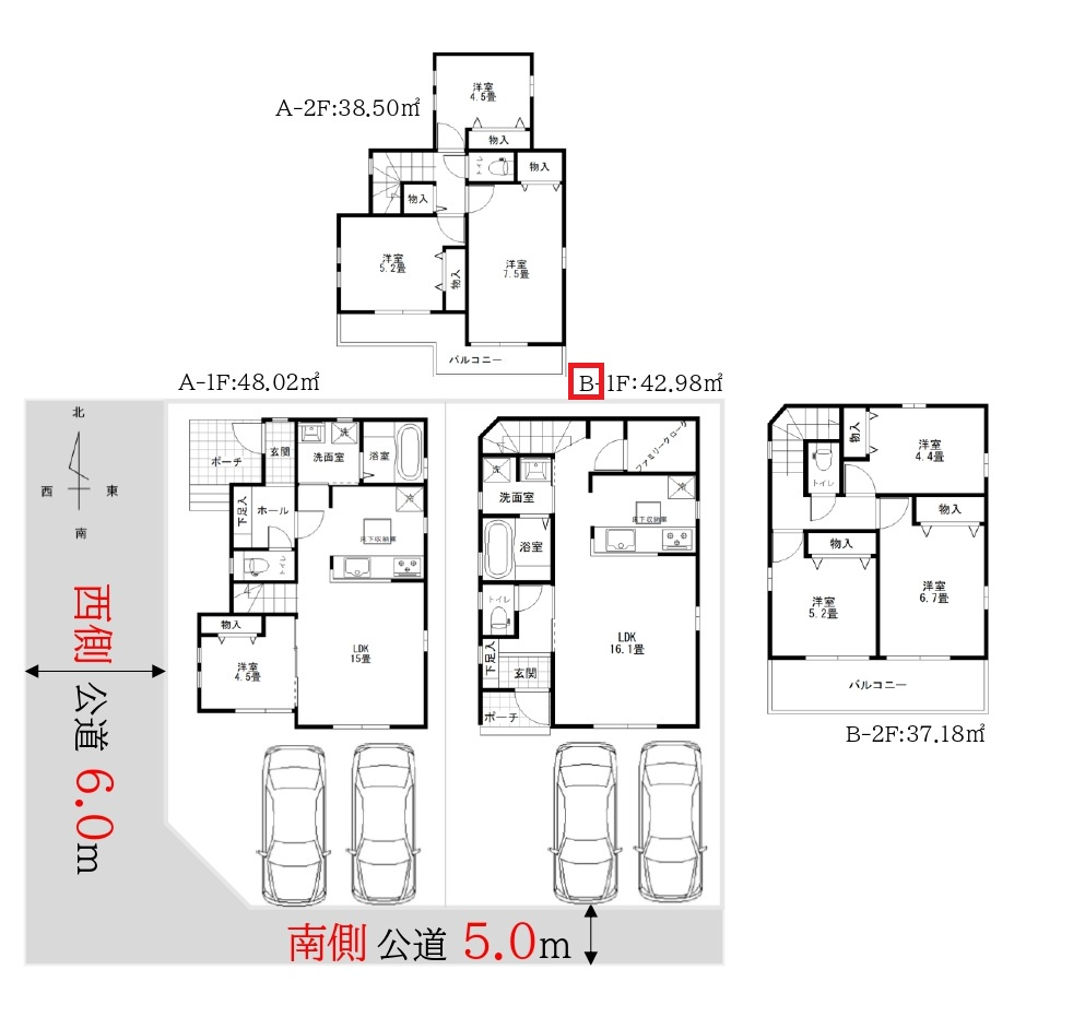 所沢市北秋津・全4区画 建築条件付土地 A区画 ~北西角地~